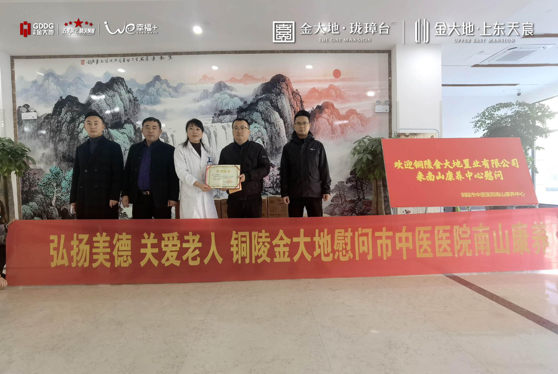捐贈儀式簡短但卻真誠樸實。銅陵金大地皖南事業部曹總表示“敬老愛老是我們中華民族的傳統美德,作為五星房企,銅陵金大地一定會堅持傳承下去,贈人玫瑰,手留余香,傳遞愛和溫暖的同時也收獲更多快樂。”市中醫醫院南山院區杜院長代表南山康養向銅陵金大地置業有限公司交付捐贈證書,并為銅陵金大地的慰問活動點贊。