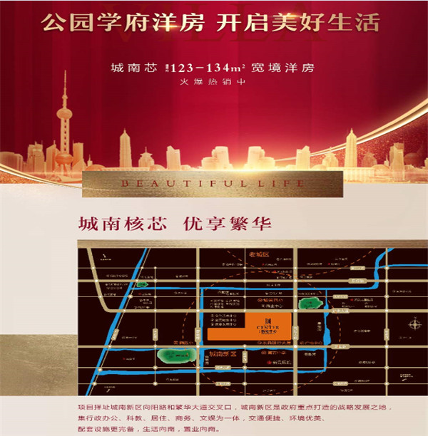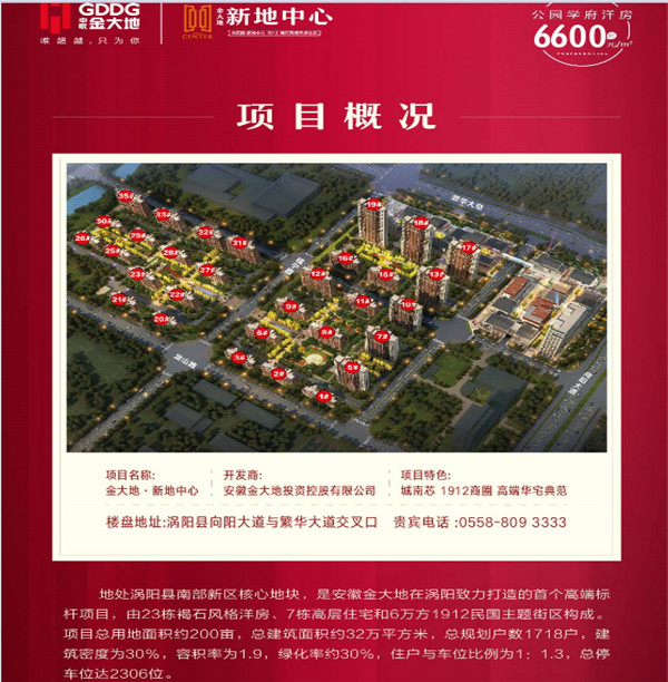 金大地·新地中心地處渦陽縣南部新區核心地塊,是安徽金大地在渦陽致力打造的首個高端標桿項目,將建成包括褐石風格洋房、高層住宅和1912民國主題街區的城市綜合體項目。項目總用地面積約200畝,總建筑面積約32萬平方米,擁有渦陽縣四小和五中優質學區資源和配套,并配有自持的6萬方商業中心—金大地1912街區。項目建筑設計采用新古典建筑風格與英倫褐石風搭配,園林景觀采用古典主義設計,將打造高貴的英倫生活意境,在園林的主軸線上,依次布置寬闊的林蔭道、花壇、水池、噴泉、雕塑等景觀。