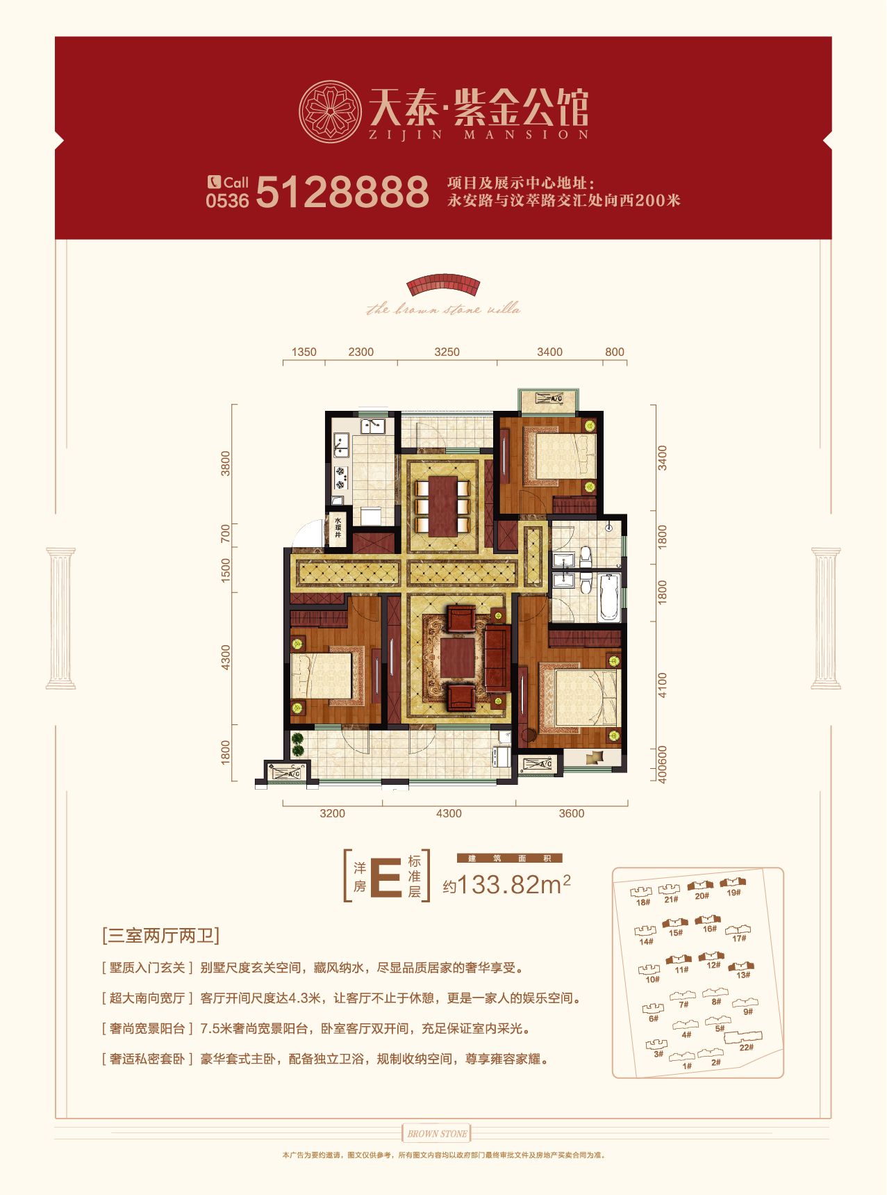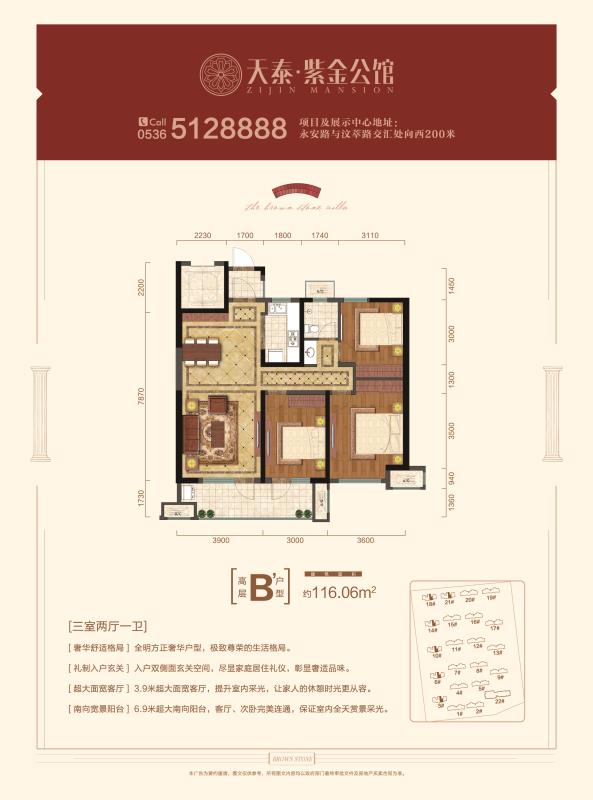 總占地面積約1.3萬㎡,總建筑面積約22.8萬,7棟高層和14棟洋房組合而成,項(xiàng)目容積率2.5,綠化率高達(dá)31%。
