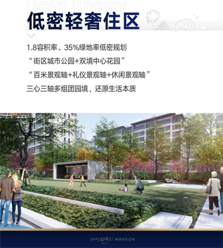 項目總建筑面積約26萬方,容積率1.8,綠地率35%,社區景觀規劃“三心三軸”園境空間,復刻尊榮禮序與詩意美好,啟幕九大生活劇場的美好序章。